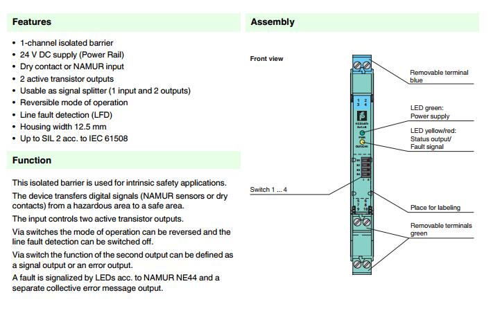 KCD2-ST-Ex1.LB,開(kāi)關(guān)量輸入安全柵