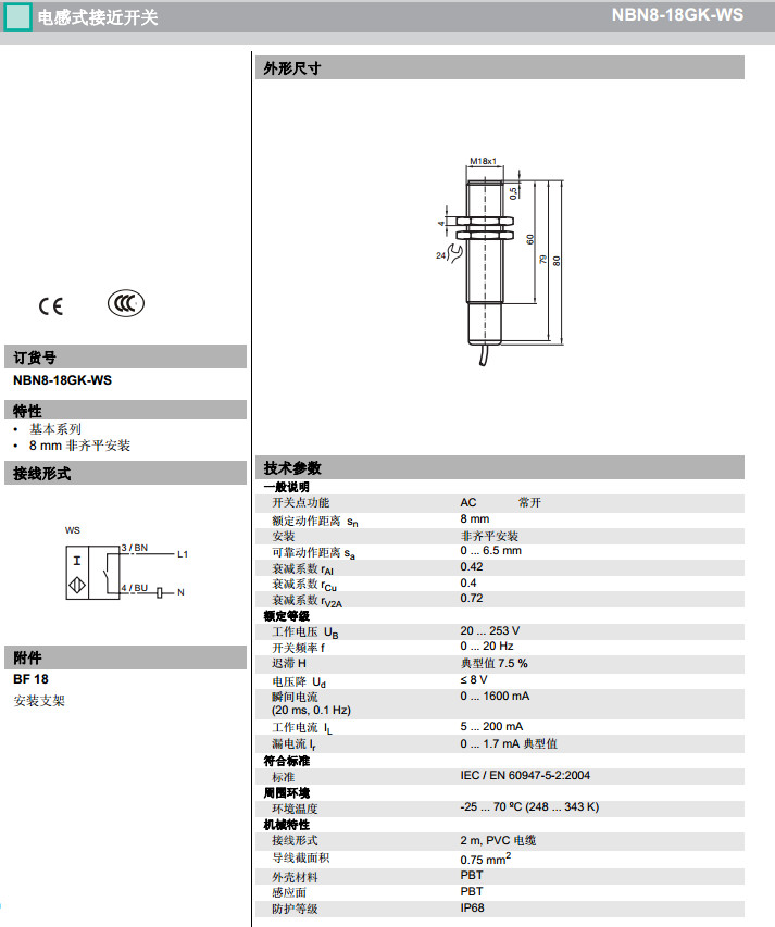 NBN8-18GK-WO,NBN8-18GK-WS感應(yīng)式傳感器