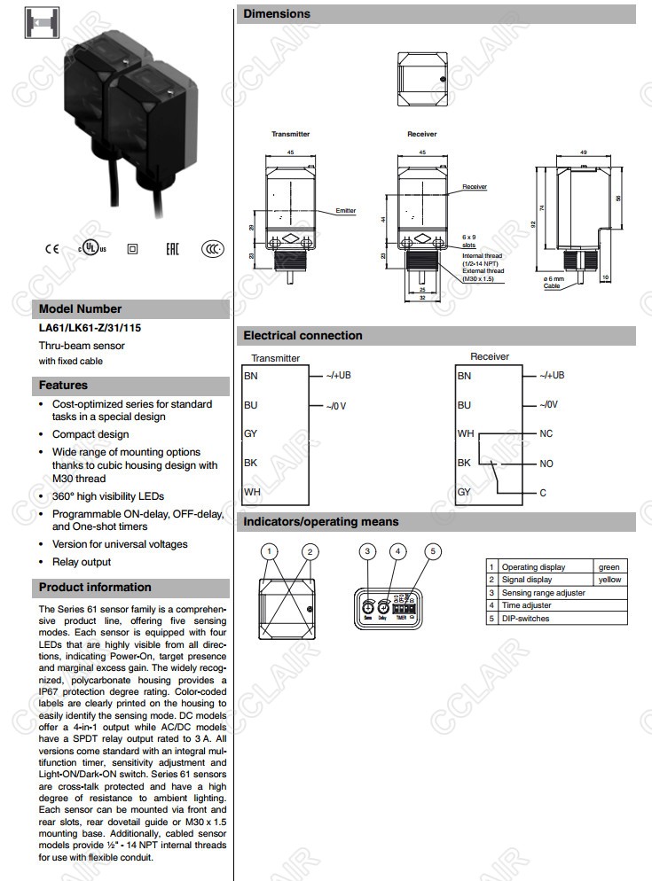 LA61/LK61-Z/31/115,對(duì)射型傳感器