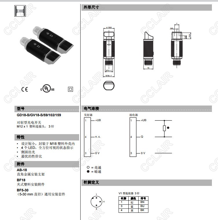 GD18-S/GV18-S/59/102/159,對(duì)射型傳感器