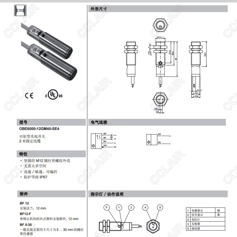 OBE6000-12GM40-SE4,對(duì)射型傳感器