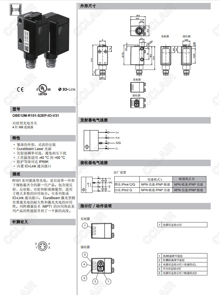 OBE12M-R101-S2EP-IO-V31,對(duì)射型傳感器