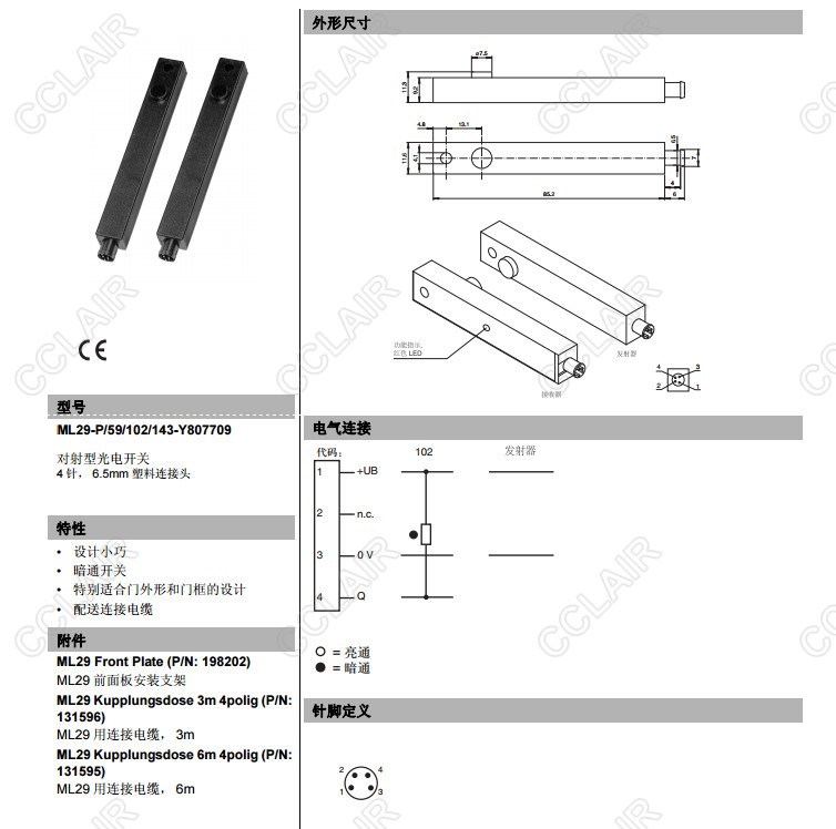 ML29-P/59/102/143-Y807709,MML29-P/59/103/143,對(duì)射型傳感器