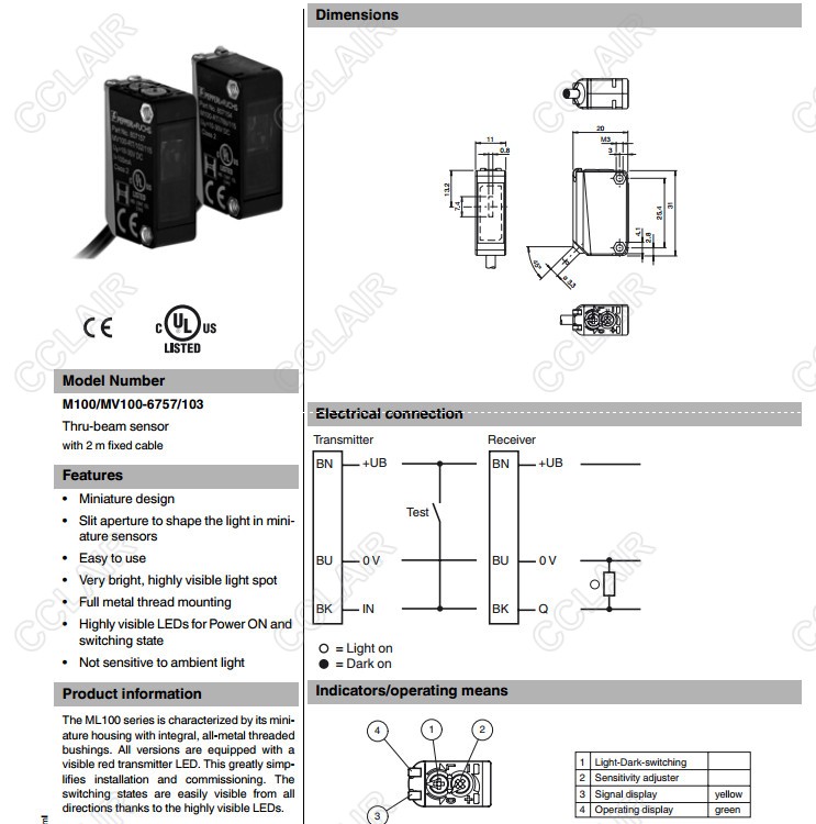 M100/MV100-6757/103,M100/MV100-IR/76a/103/115,對(duì)射型傳感器
