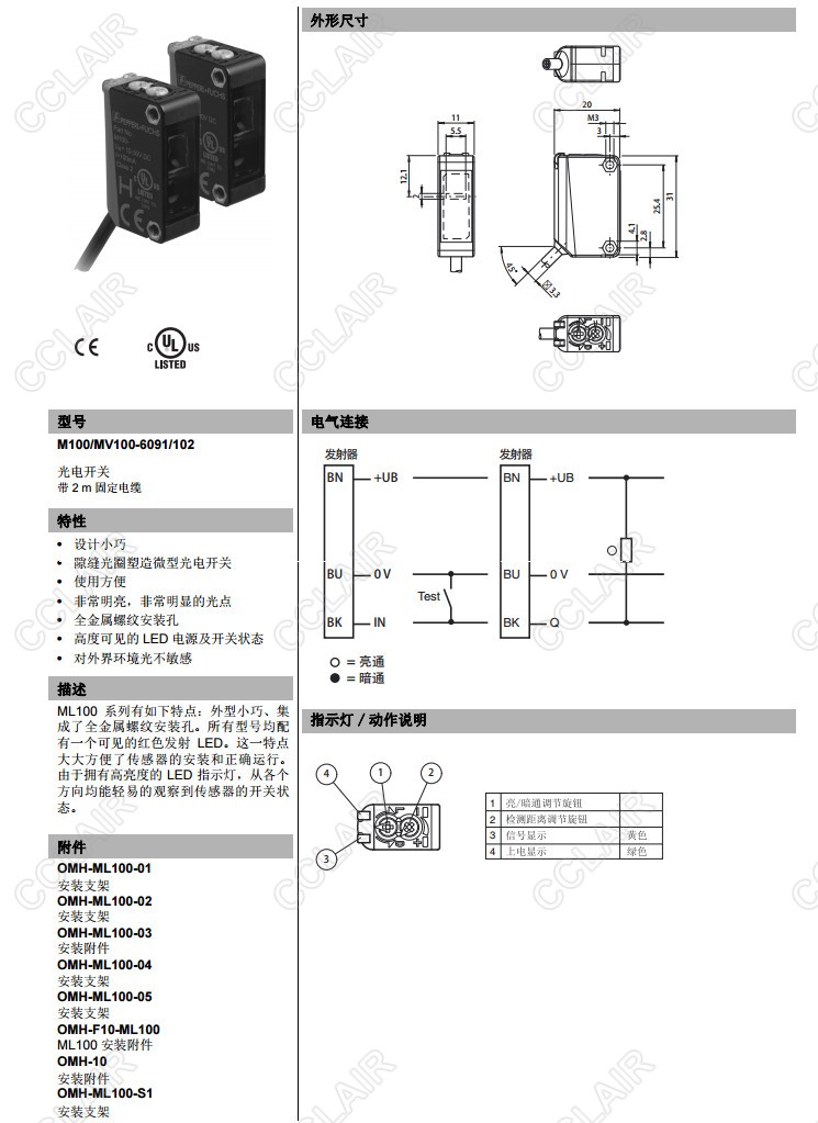 M100/MV100-6090/103,M100/MV100-6091/102,對射型傳感器