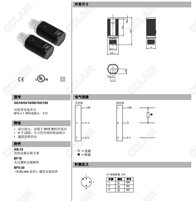 GD18/GV18/59/102/159,對(duì)射型傳感器