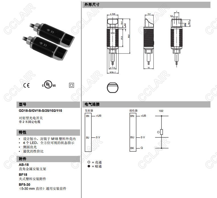GD18-S/GV18-S/115/120,GD18-S/GV18-S/25/102/115,對(duì)射型傳感器