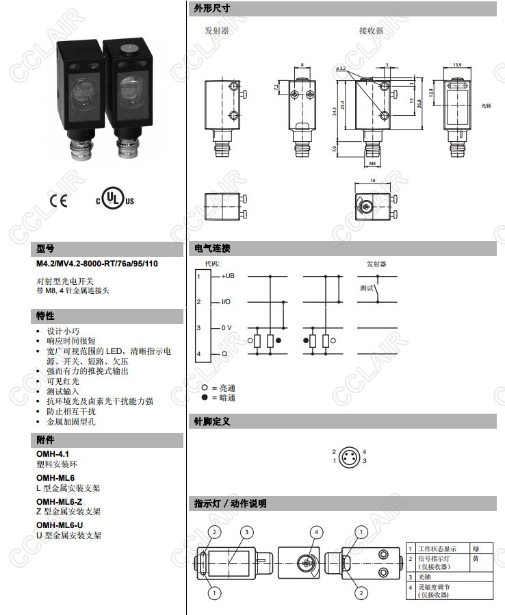 M4.2/MV4.2-8000-RT/76a/95/110,對射型傳感器