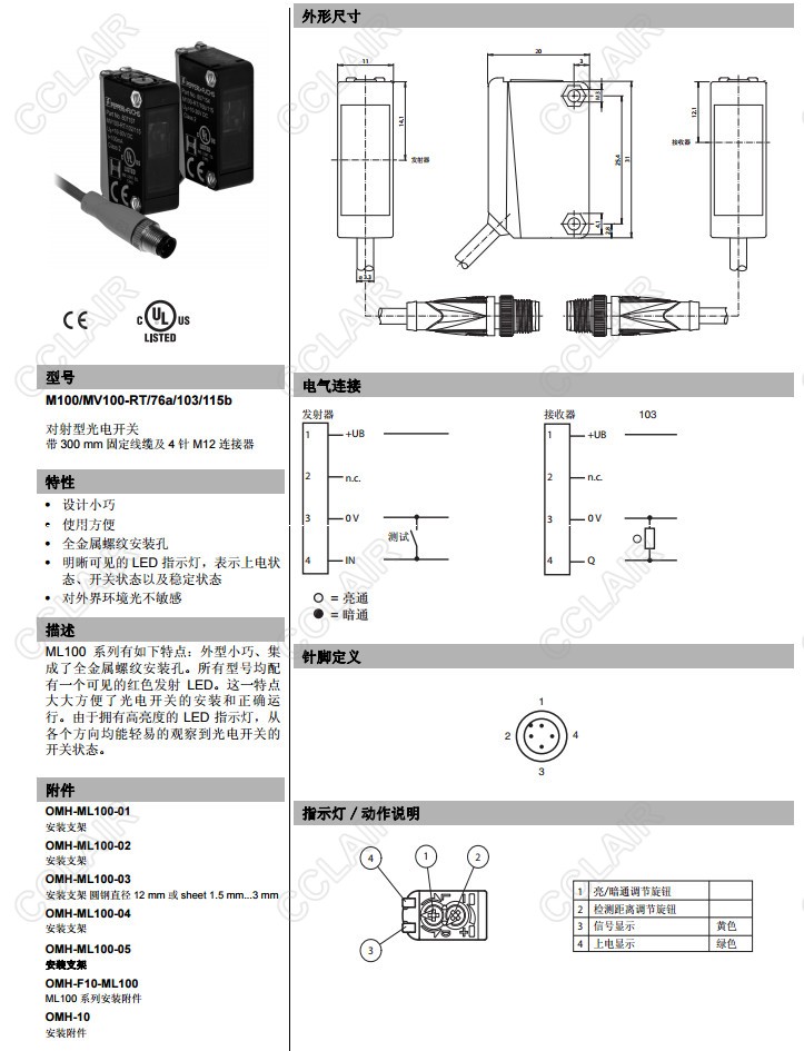 M100/MV100-RT/76a/103/115b,對射型傳感器