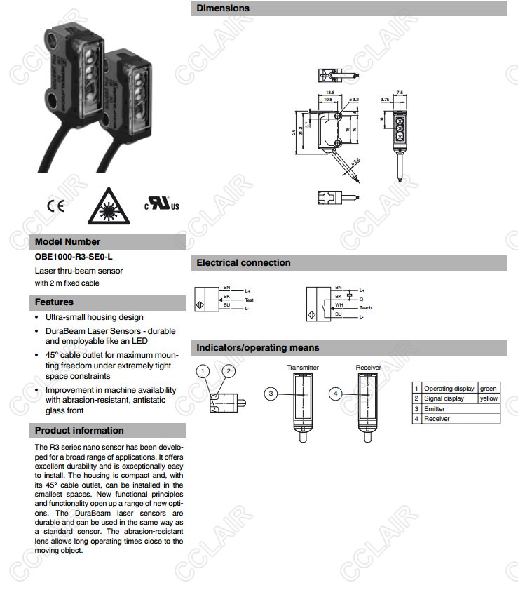 OBE1000-R3-SE0-L,OBE10M-R3-SE0-L,對射型傳感器