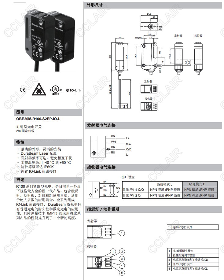 OBE20M-R100-S2EP-IO-L,對射型傳感器