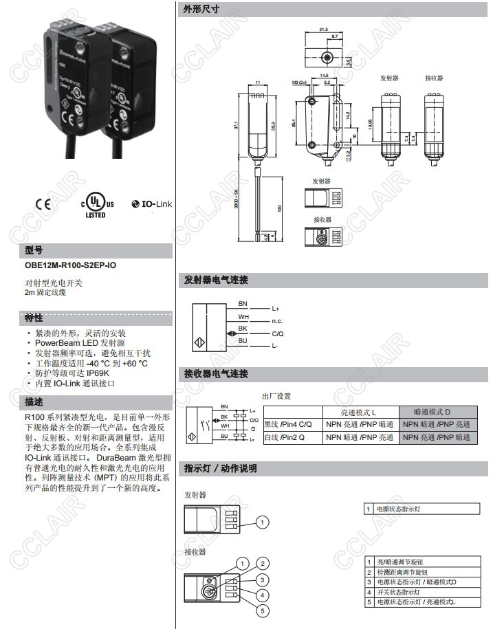 OBE12M-R100-S2EP-IO,對射型傳感器