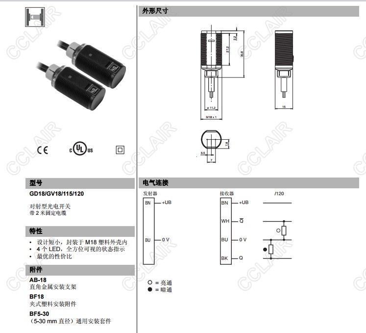 GD18/GV18/115/120,對射光電開關