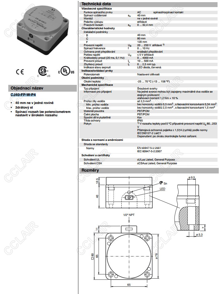 CJ40-FP-W-P4,電容式接近開關(guān)