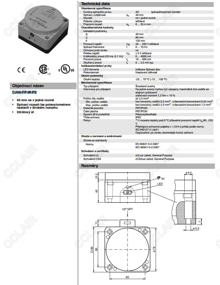 CJ40-FP-W-P2,電容式接近開關(guān)