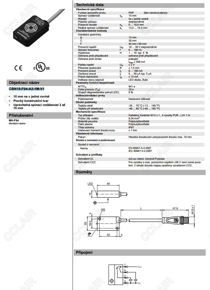 CBN15-F64-A2-1M-V1,電容式接近開(kāi)關(guān)