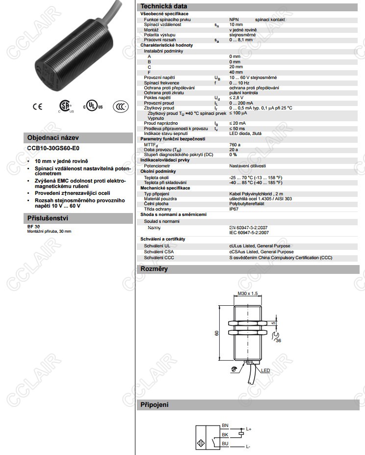 CCB10-30GS60-E0,電容式接近開關(guān)