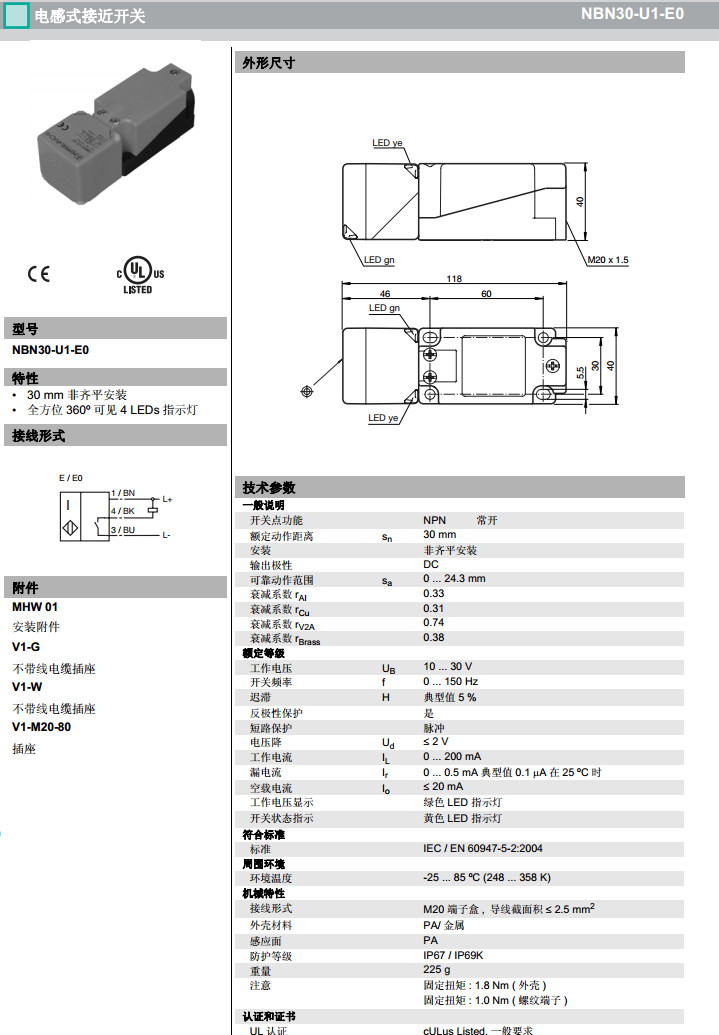 NBN30-U1-E0,NBN30-U1-E1,NBN30-U1-E2-V1,NBN30-U1-E3感應(yīng)式傳感器