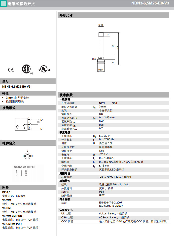 NBN3-6,5M25-E0-V3,NBN3-6,5M25-E2-V3感應(yīng)式傳感器