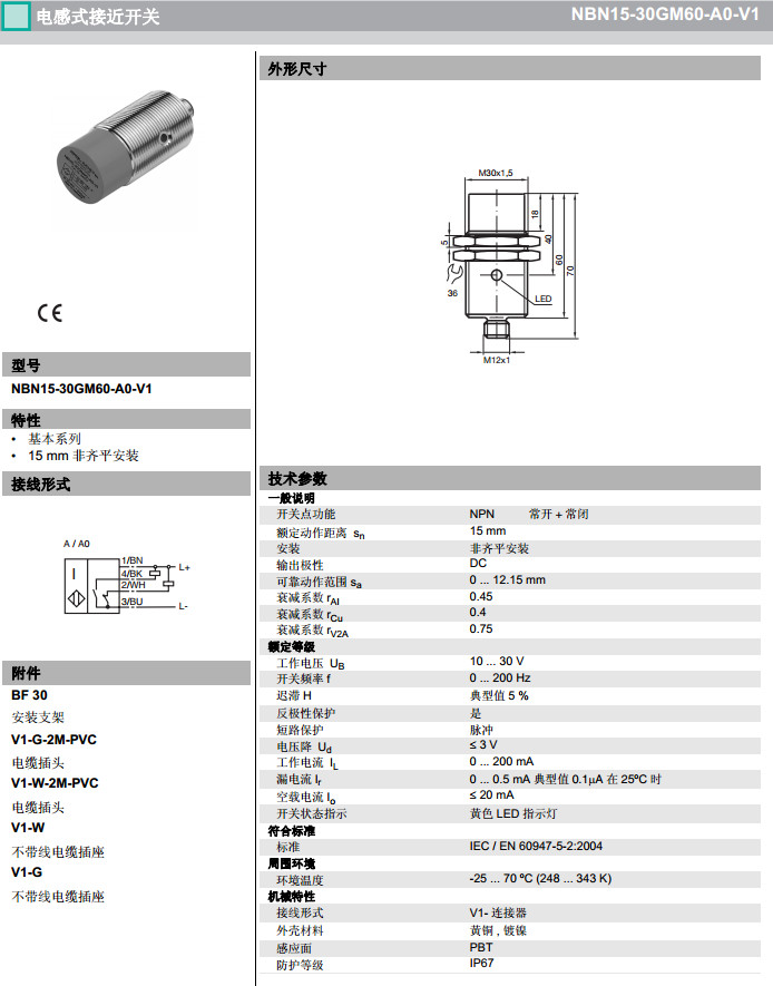 NBN15-30GM60-A0-V1,NBN15-30GM60-A2-V1感應式傳感器
