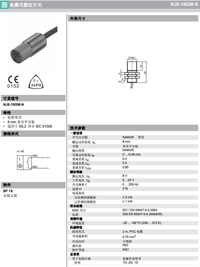 NJ8-18GM-N感應式傳感器