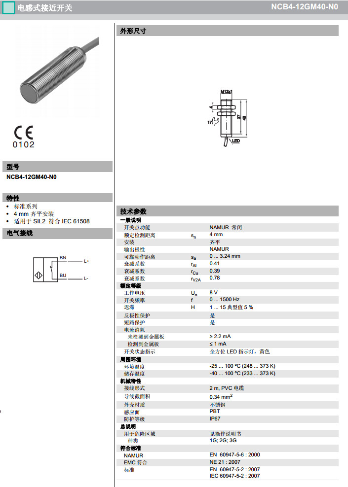NCB4-12GM40-N0,電感式接近開(kāi)關(guān)