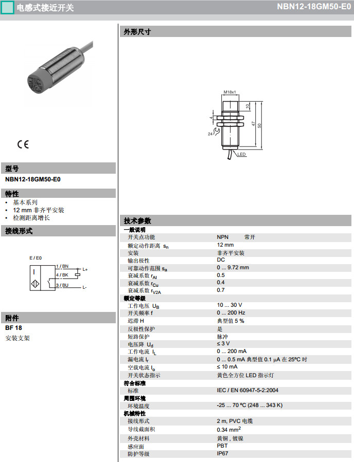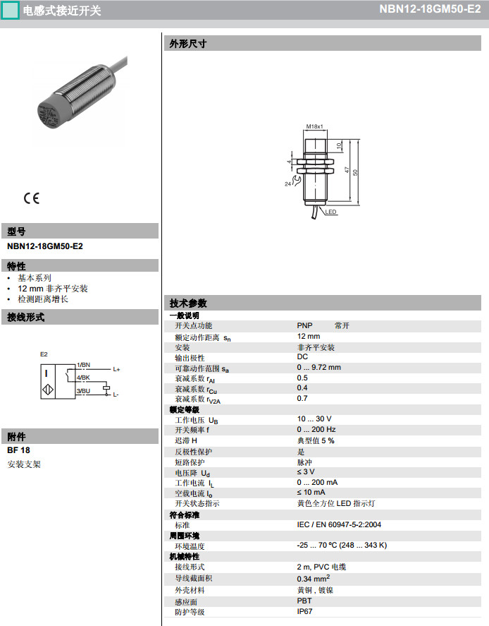 NBN12-18GM50-E0,NBN12-18GM50-E2,電感式接近開關