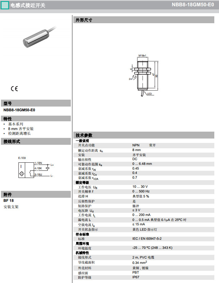 NBB8-18GM50-E0,NBB8-18GM50-E2電感式接近開關