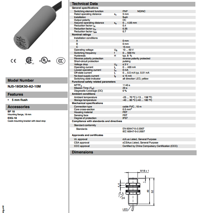 NJ5-18GK50-A2-10M,電感式接近開關(guān)