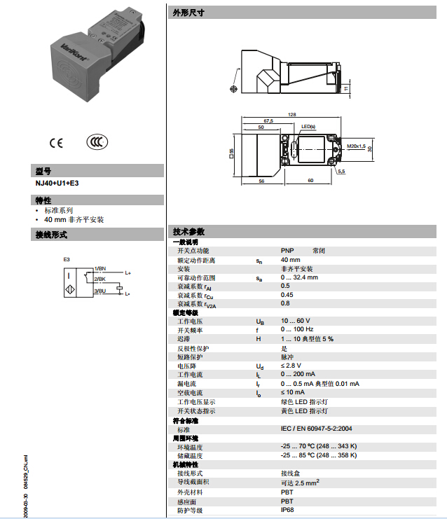NJ40+U1+E3,電感式接近開關