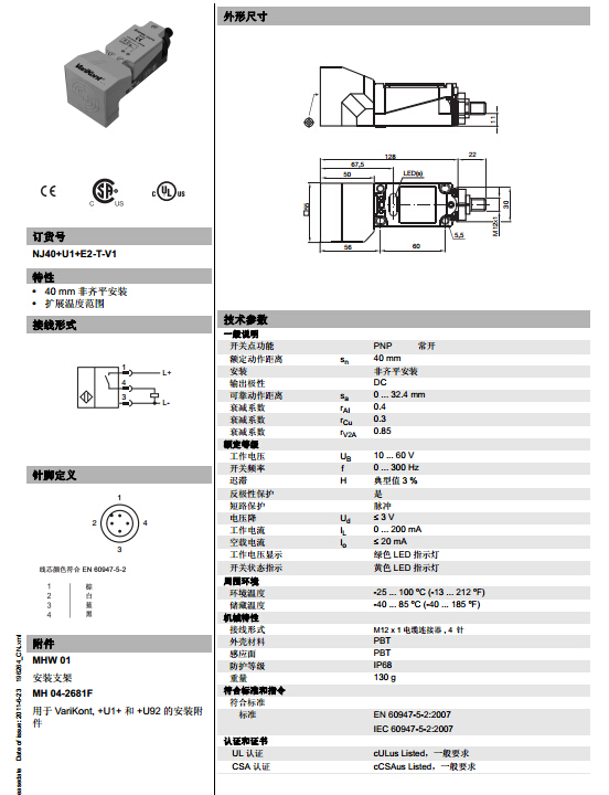 NJ40+U1+E2-T-V1,電感式接近開關(guān)