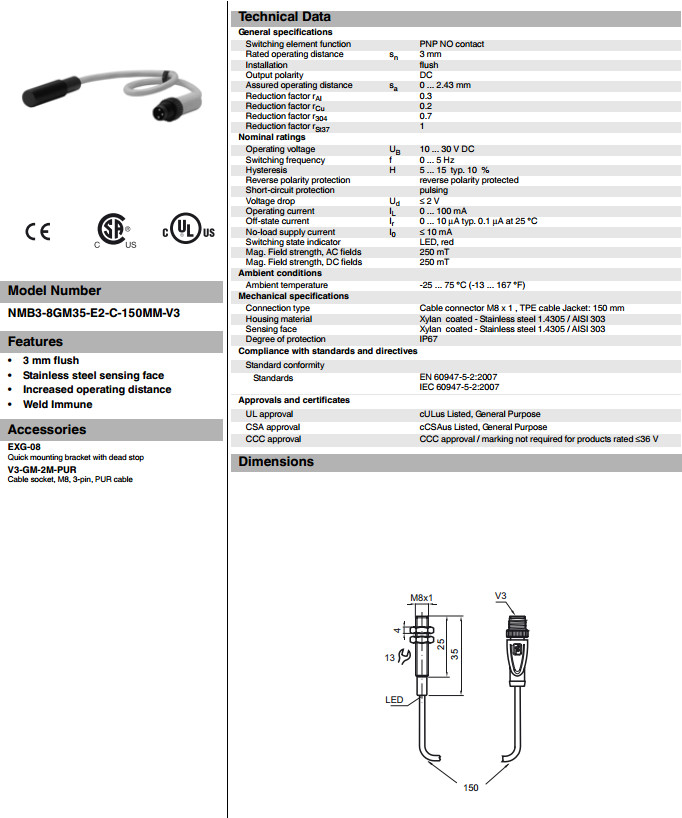 NMB3-8GM35-E2-C-150MM-V3電感式接近開關(guān)