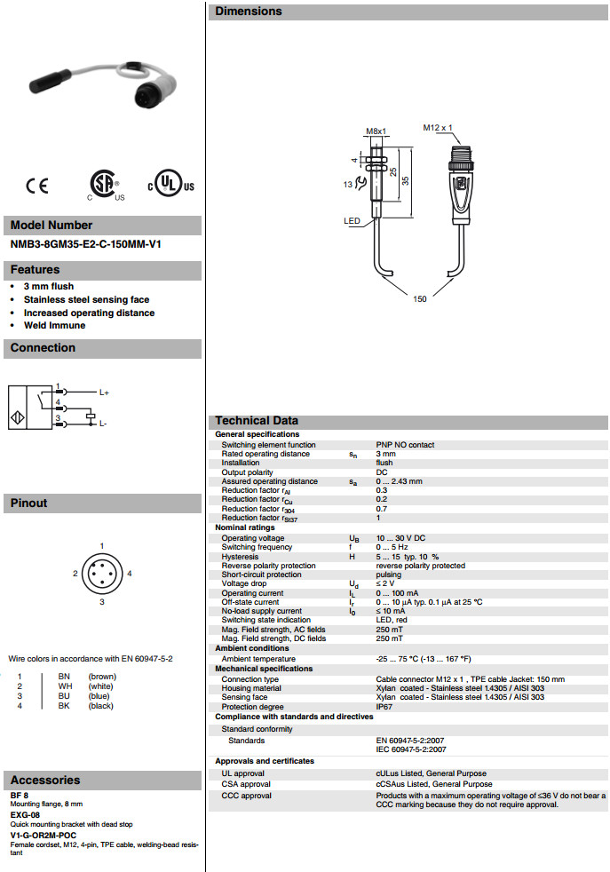 NMB3-8GM35-E2-C-150MM-V1電感式接近開(kāi)關(guān)
