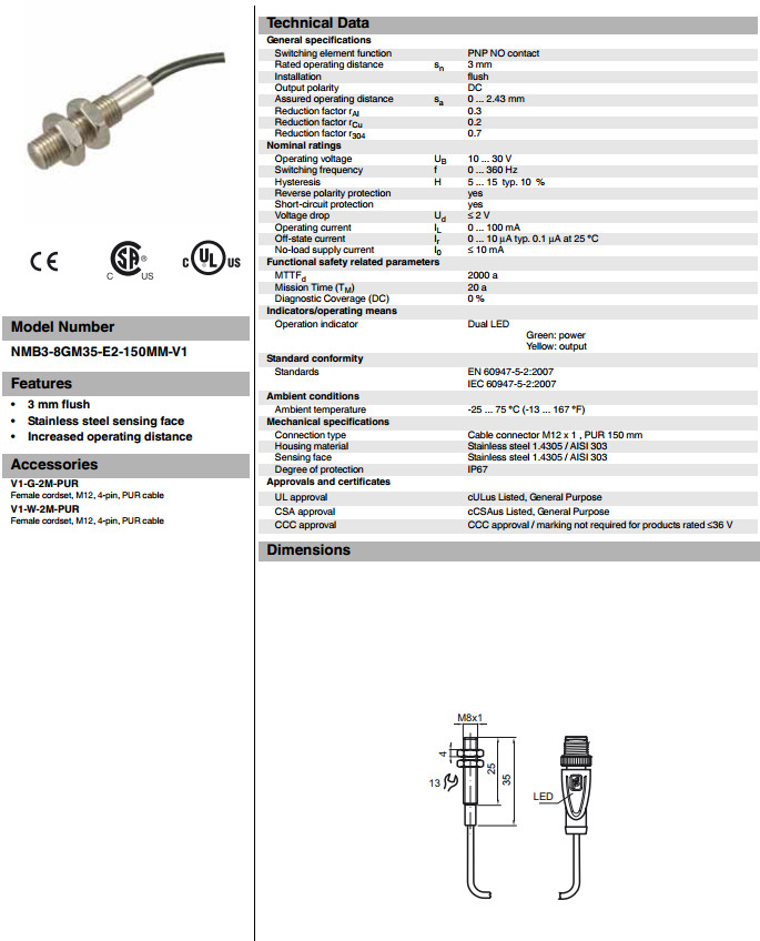 NMB3-8GM35-E2-150MM-V1電感式接近開(kāi)關(guān)