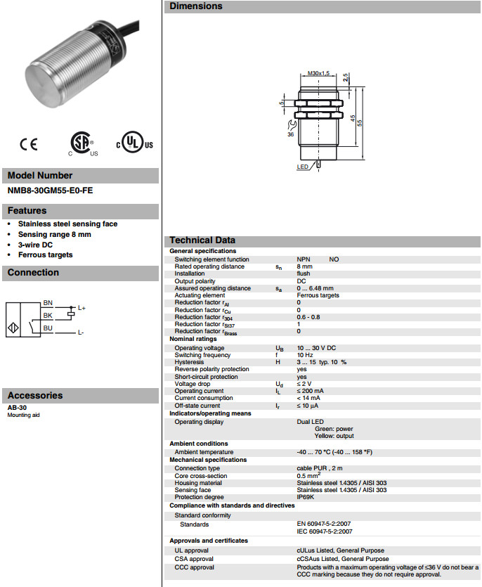 NMB8-30GM55-E0-FE電感式接近開(kāi)關(guān)