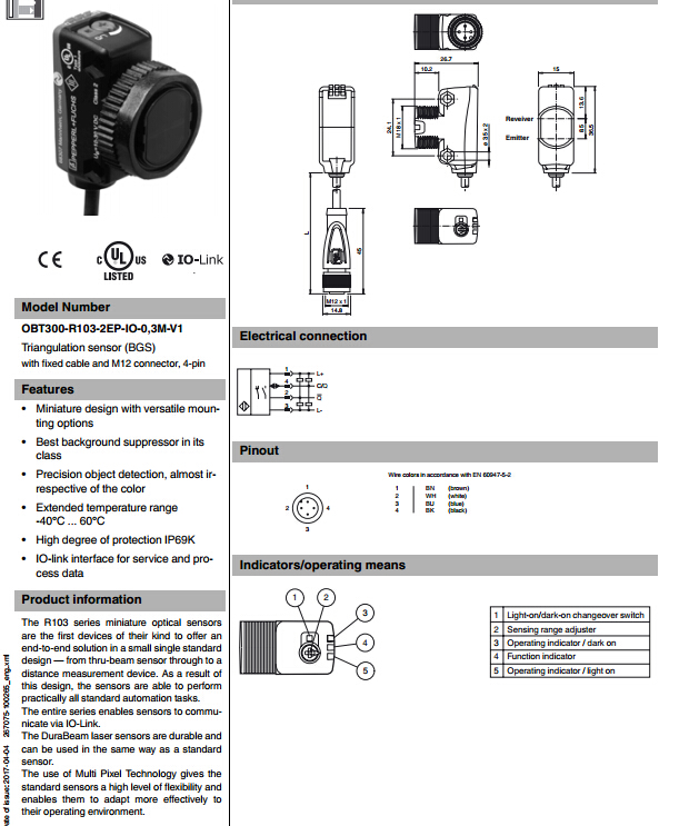 OBT300-R103-2EP-IO-0,3M-V1,漫反射型傳感器