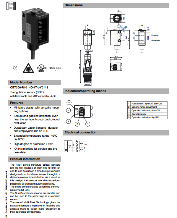 OBT300-R101-IO-1T-L-Y0113,漫反射型傳感器