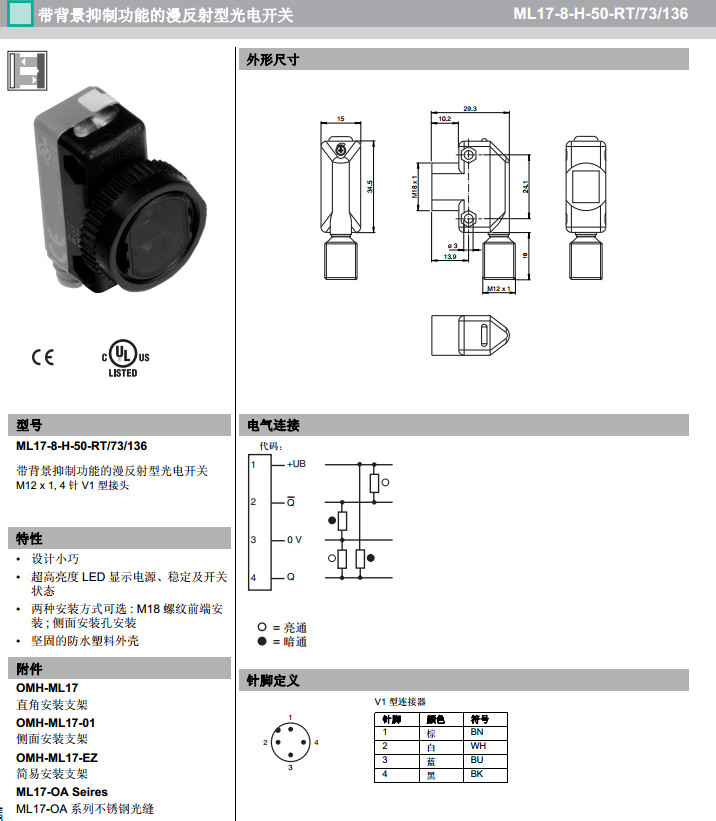 ML17-8-H-50-RT/73/136漫反射型傳感器