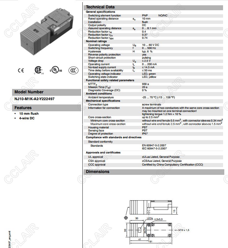 NJ10-M1K-A2-Y222497,電感式接近開關(guān)