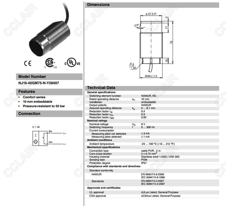NJ10-40GM75-N-Y28407,電感式接近開關(guān)