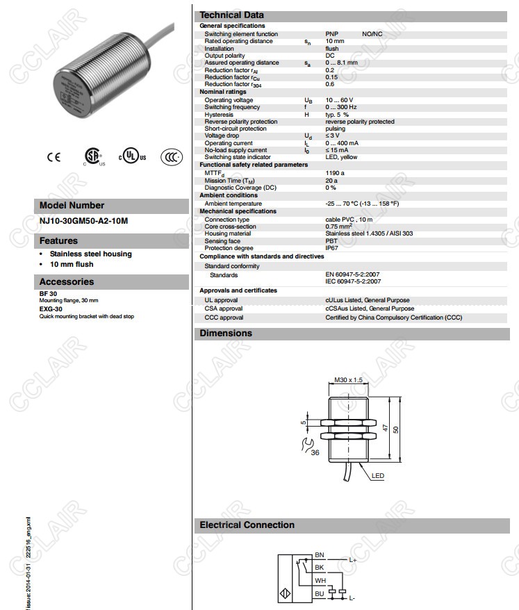 NJ10-30GM50-A2-10M,電感式接近開關(guān)