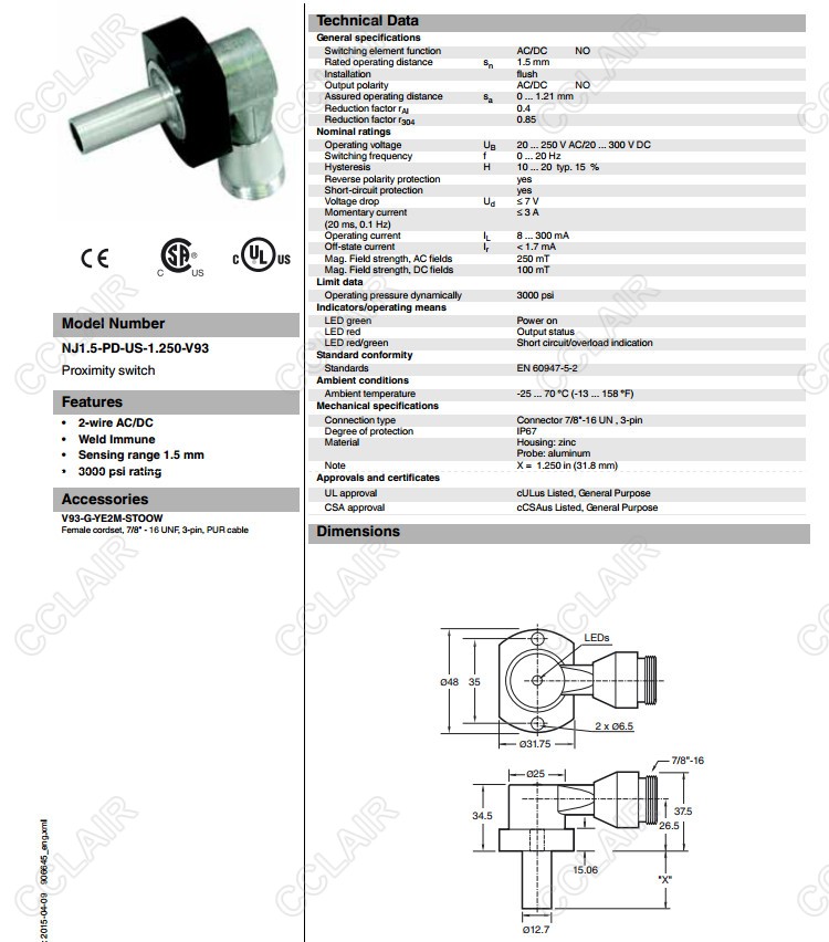 NJ1.5-PD-US-1.250-V93,電感式接近開關(guān)