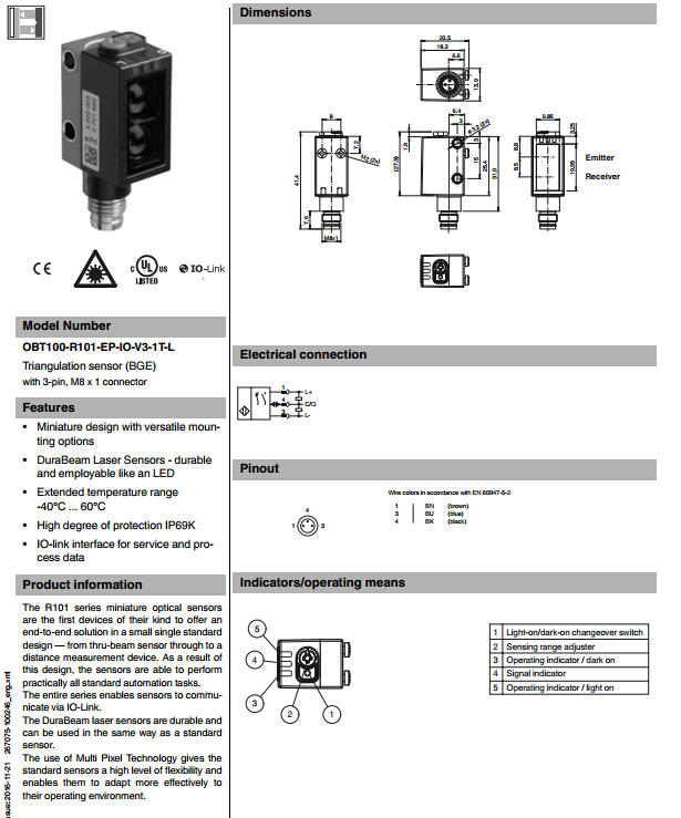 OBT100-R101-EP-IO-V3-1T-L,漫反射型傳感