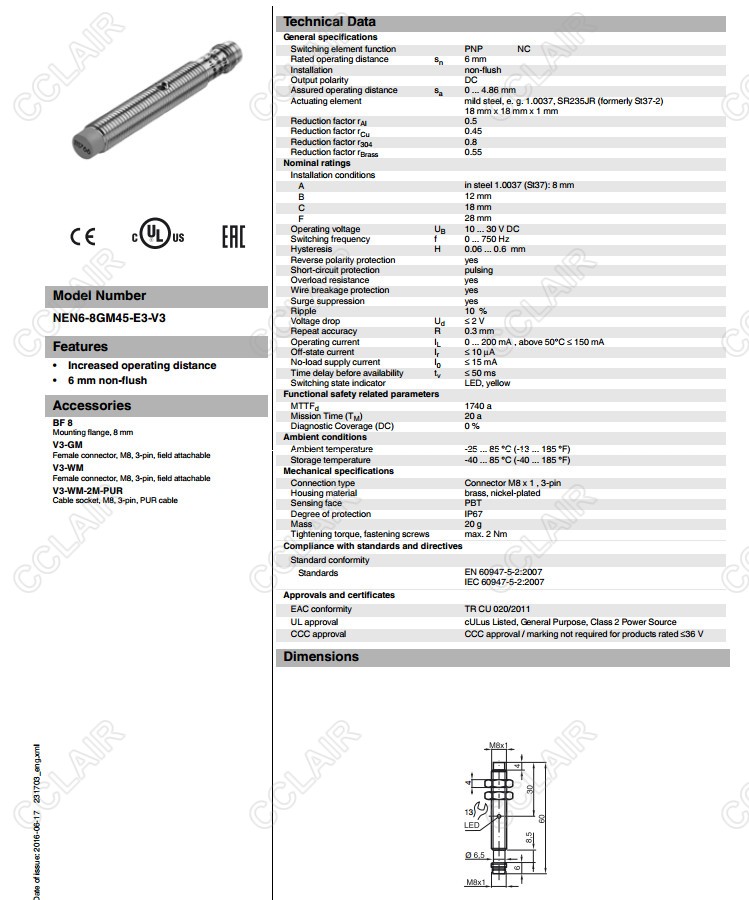 NEN6-8GM45-E3-V3,電感式接近開(kāi)關(guān)