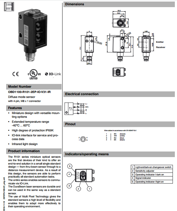 OBD1100-R101-2EP-IO-V31-IR,漫反射型傳感器
