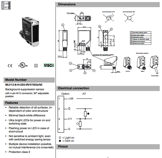 MLV12-8-H-250-IR/47/65b/92,漫反射型傳感器