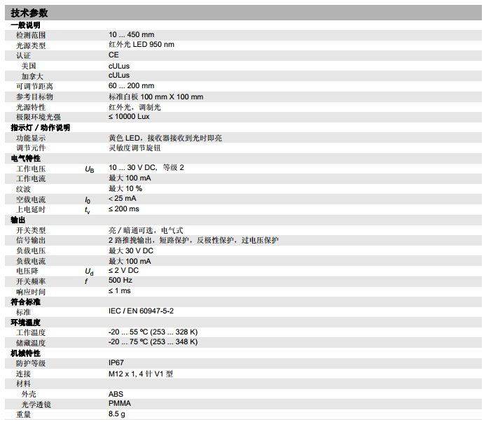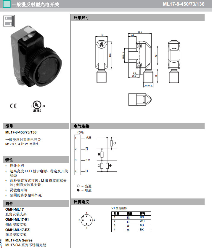 ML17-8-450/73/136漫反射型傳感器