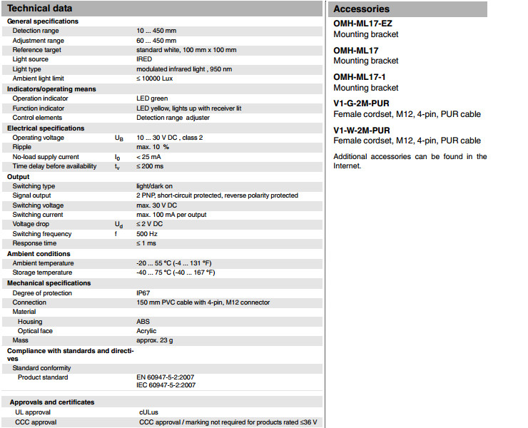 ML17-8-450/115b/120,ML17-8-450/115b/127,ML17-8-450/115b/136漫反射型傳感器
