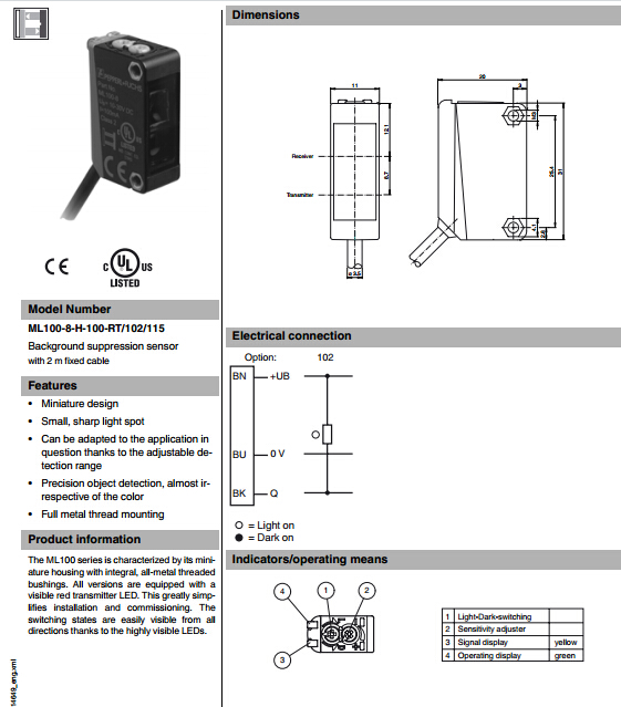 ML100-8-H-100-RT/102/115,漫反射型傳感器