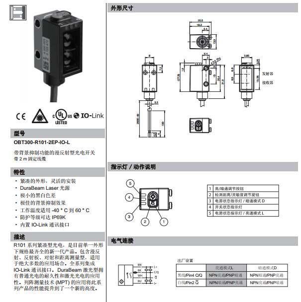OBT300-R101-2EP-IO-L,漫反射型傳感器
